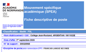 Fiches de postes disponibles pour nos adhérents
