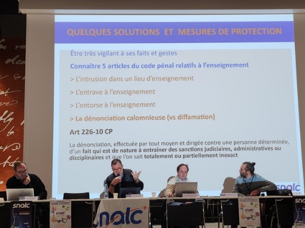 Nos deux intervenants ont ainsi pu également présenter les outils et recours à disposition des personnels de l’éducation pour se défendre au quotidien.